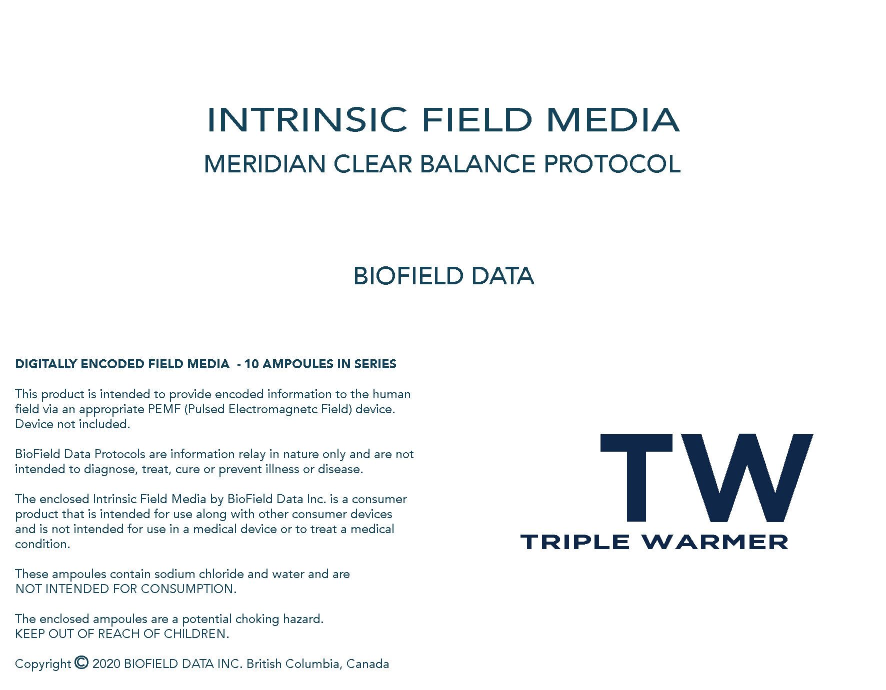Biofield Data’s ten-ampule Triple Warmer Meridian protocol provides their most intensive clearing and balancing data set for the triple warmer channel. Meridian protocols are used to update the system that is prone to ongoing imbalance within a particular channel or when a meridian is reluctant to regain or hold balance.